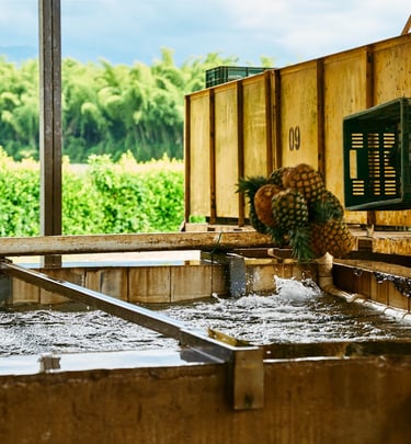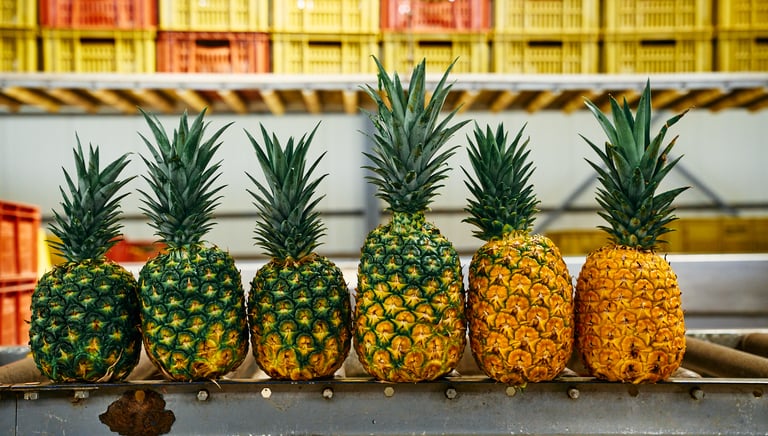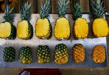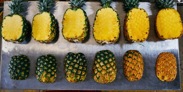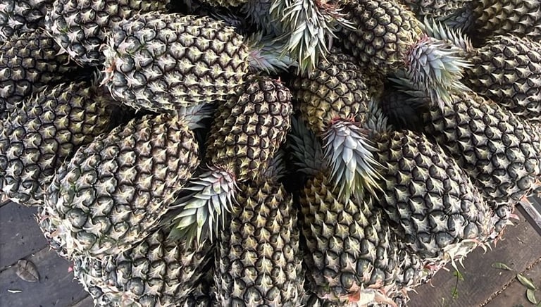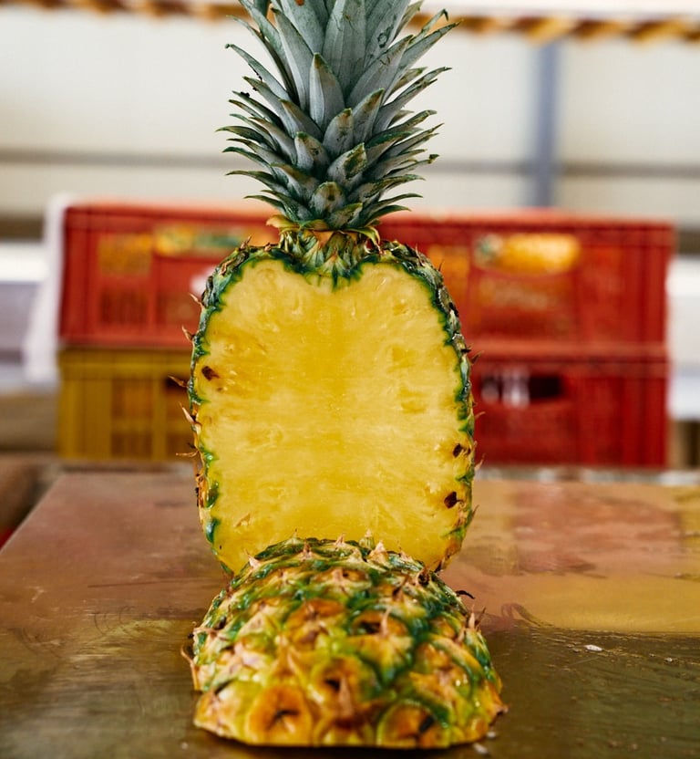 La piña Mayanez es una variedad tradicional muy apreciada en Colombia por su sabor equilibrado, aroma intenso y jugosidad natural. Es una piña de consumo industrial en el mercado nacional, valorada por su rendimiento, frescura y versatilidad